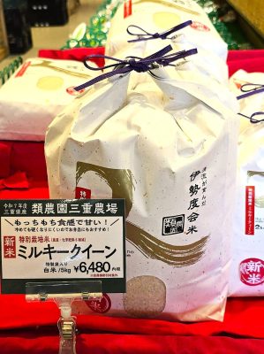 お米の前を通ったら、新米が出ていました・・・が、あれ、見間違いかな?